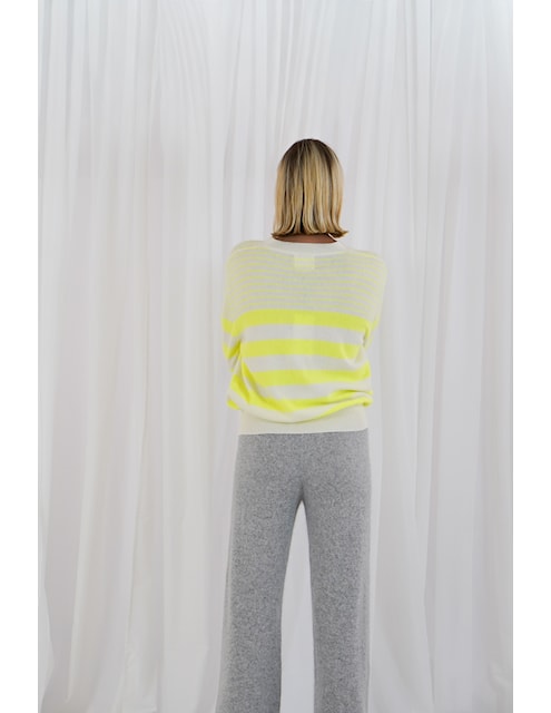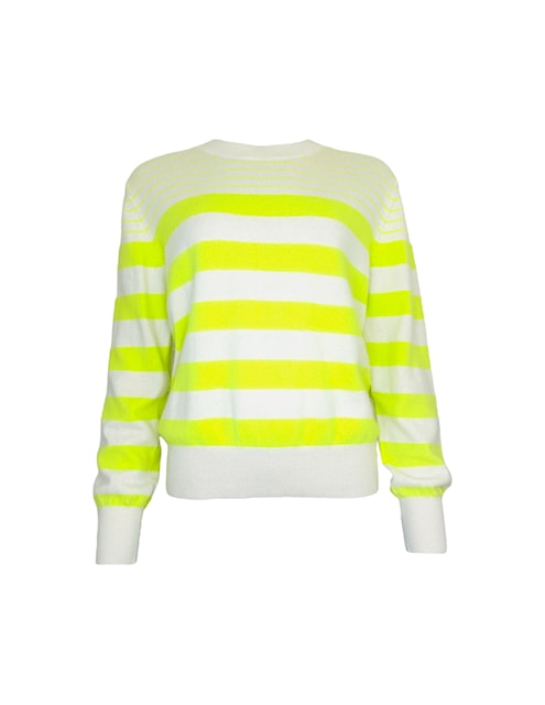 • Rayures horizontales coloris néon yellow fines sur le haut du buste, puis plus large ainsi que sur les manches, esprit marinière